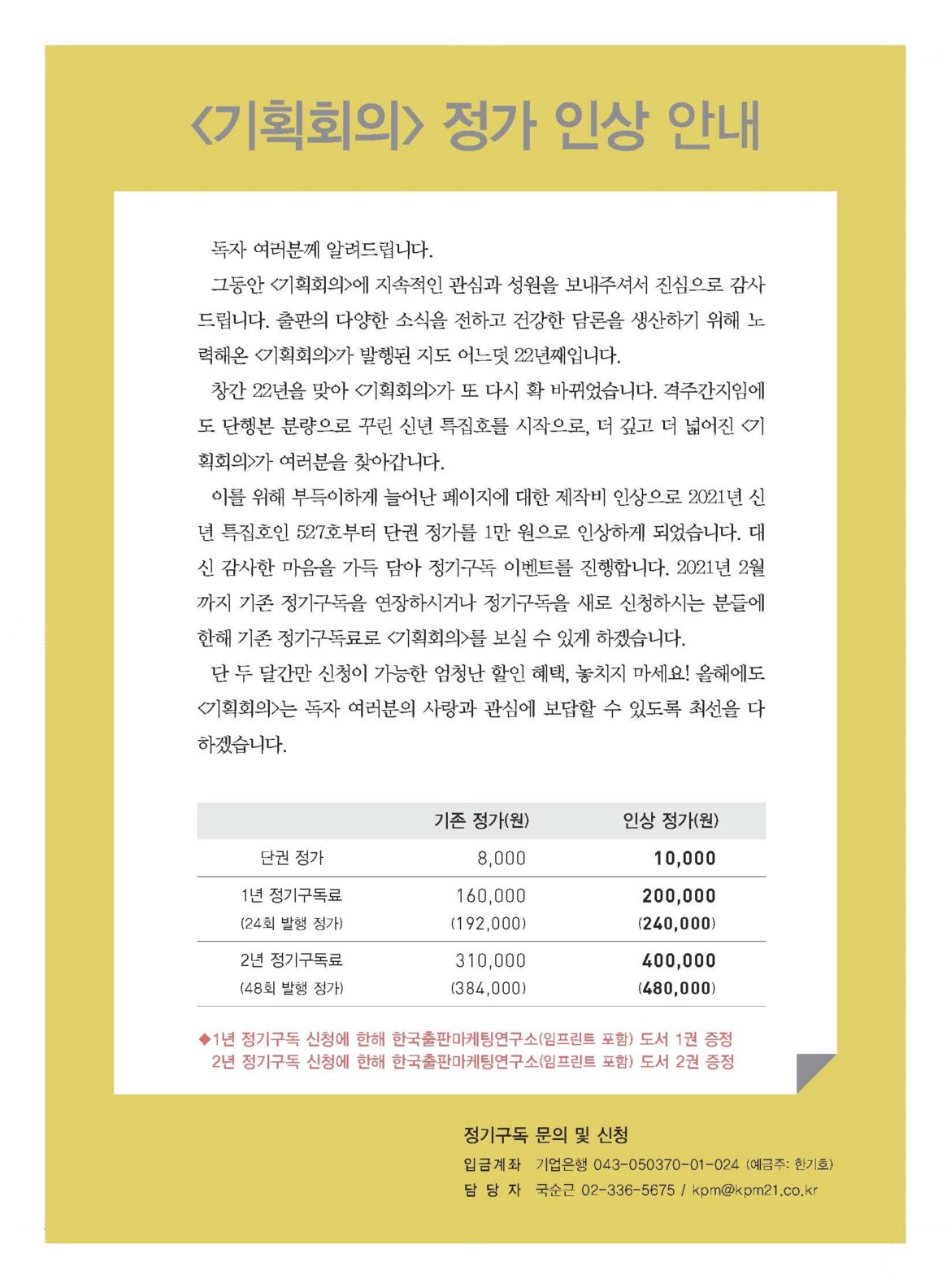 ※ <기획회의>는 격주간 발행으로(5, 20일 발행) 1년 동안 총 24부 받아보실 수 있습니다.