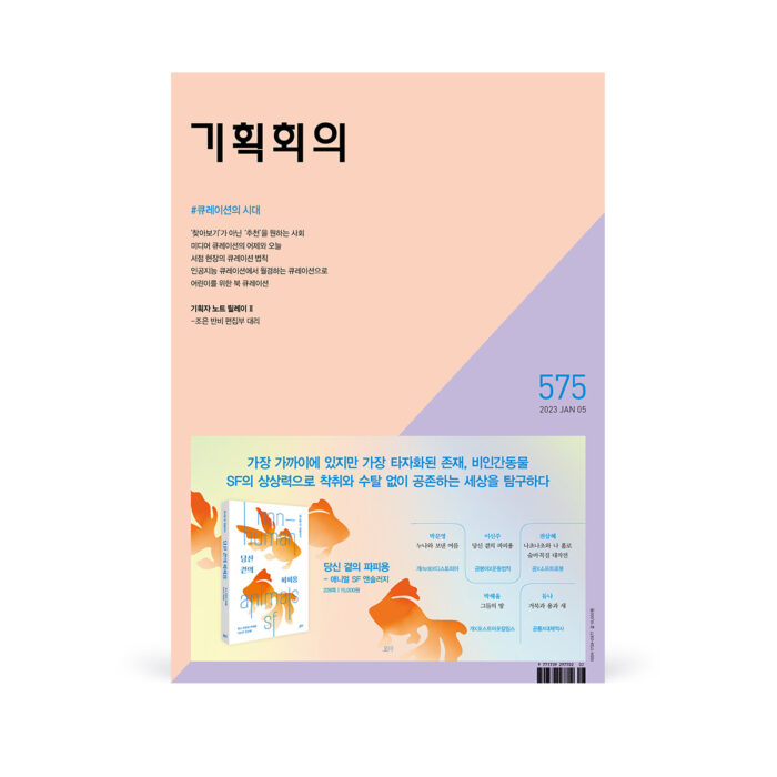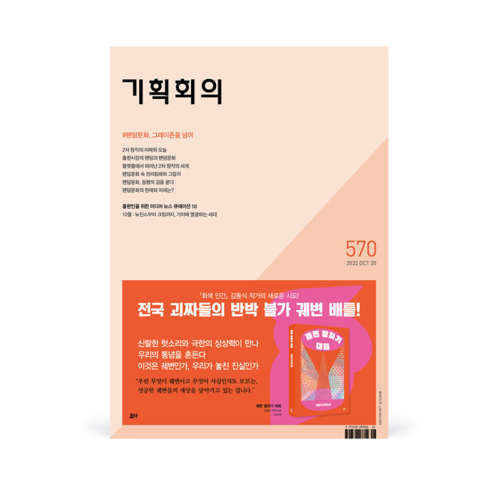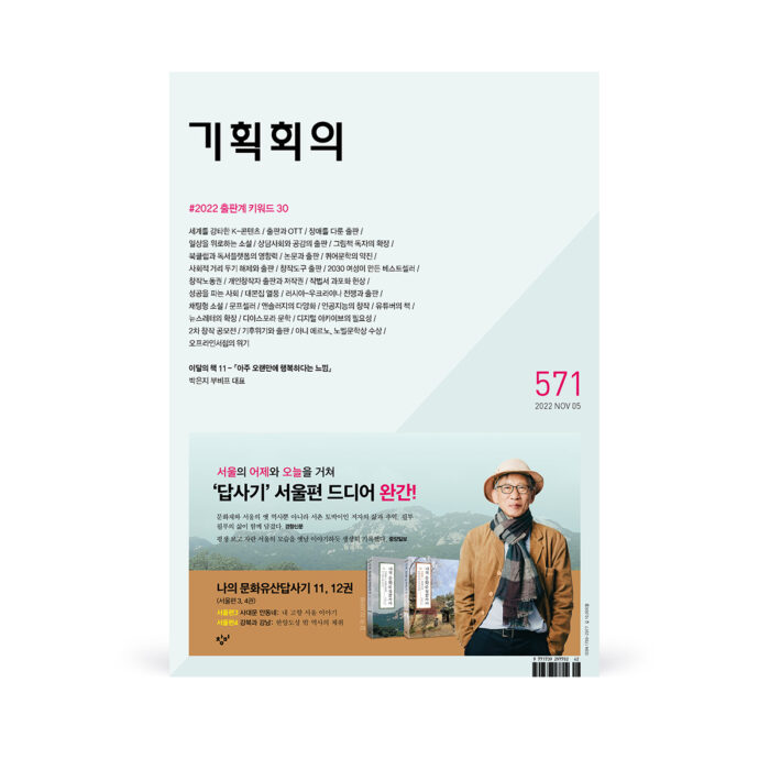 기획회의<기획회의> 569호(2022.10.05) 이슈 “상담사회, 공감의 출판” 대가족 사회의 해체와 함께 핵가족 사회로 넘어오며 조언을 구할 수 있는 ‘어른’들이 부재한 현대사회. 자신이 원하는 답을 타인에게 듣고 싶어 하고 선택을 미루고 싶어 하는 이들이 점점 많아지고 있으며, 이러한 사회의 흐름에 따라 상담의 영역 또한 거대하게 확장되었다. 출판 또한 마찬가지다. 출판은 상담을 갈구하는 ‘상담사회’의 요구를 충족시켜주고 있을까? 출판이 상담의 역할을 어떻게 수행하고 있으며, 그 흐름의 변화는 어떤지 자세히 알아본다.₩9,000 -