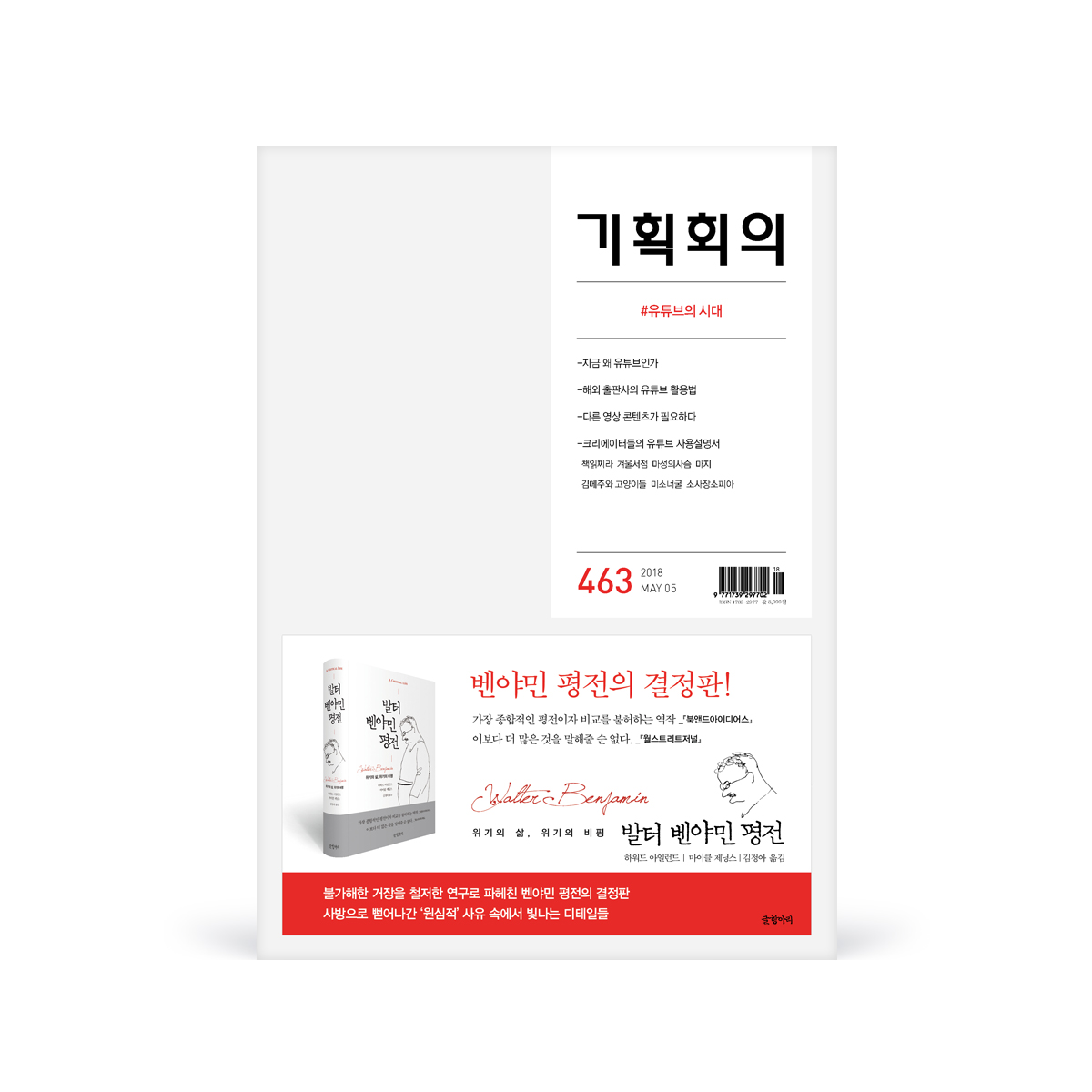 기획회의463호(2018.05.05) 이슈 “유튜브의 시대” 유튜브의 시대입니다. 모바일 애플리케이션 조사업체 와이즈앱에 따르면 국내 안드로이드 이용자들의 유튜브 사용시간은 2016년 3월 총 79억 분에서 올해 2월 257억 분으로 3배 이상 가파르게 올랐습니다. 그중에서도 10대의 유튜브 총 사용 시간은 1억2900만 시간, 20대는 8000만 시간이었습니다. 젊은층은 이미 유튜브에서 모든 것을 해결하고 있습니다. 이에 따라 모든 광고 시장도 유튜브로 집중되고 있지요. 메조미디어의 조사에 따르면 2017년 동영상 광고비가 유튜브는 1656억 원, 페이스북 1329억 원, 네이버 484억 원, 다음 358억 원으로 유튜브의 동영상 광고비가 압도적으로 높았습니다. 출판의 홍보툴도 유튜브를 주목해보아야 한다는 것입니다. 지금 왜 유튜브일까요. 유튜브에서 홍보는 어떻게 해야 할까요. 이에 <기획회의>에서는 출판계에 유튜브 사용설명서를 전합니다.₩7,200 -