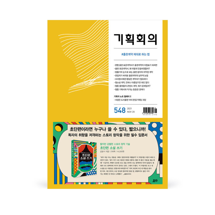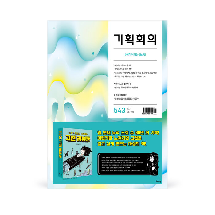 기획회의<기획회의> 543호(2021.09.05) 이슈 “창작이라는 (노동)” 2021년 6월 16일, 반디앤루니스를 운영하던 서울문고가 경영 악화로 인한 최종 부도 소식을 전했다. 출판사-저자 간의 인세 미지급 및 누락, 출협의 저자-출판사 도서판매정보 공유시스템 개발안 등 출판계에 연이어 불거지고 있는 문제들을 궁극적으로 해결하려면 어떠한 성찰과 변화를 거듭해야 할까. 출판계 외에 다른 콘텐츠 산업에서도 비슷한 사례가 있을까. <기획회의> 543호를 통해 출판과 더불어 콘텐츠 창작이 주요한 웹툰, 웹소설, 영화, 드라마의 제작·노동 환경과 처우가 어떤지 들여다보고 개선해야 하는 사안들을 짚어보자.₩9,000