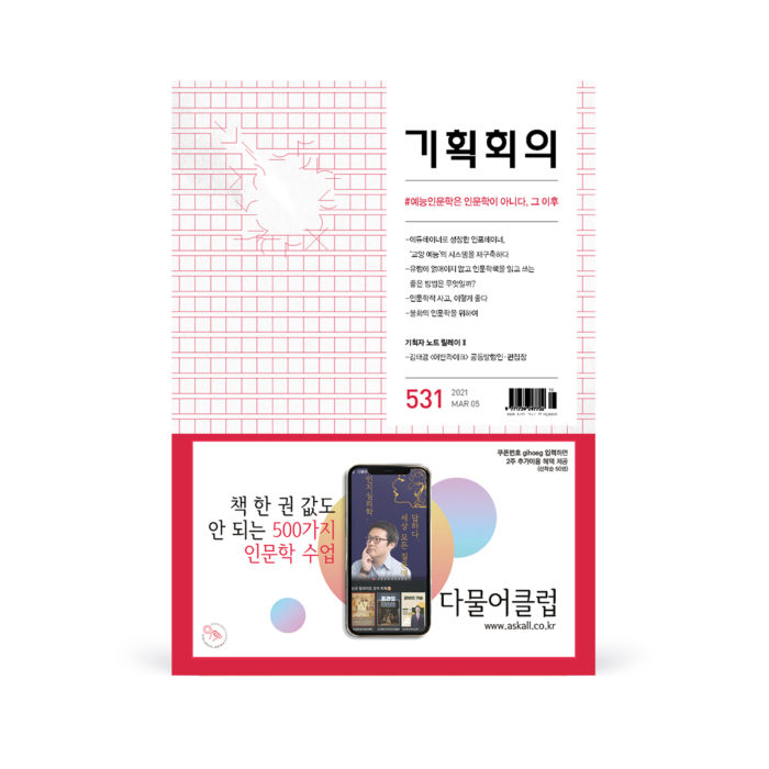 기획회의<기획회의> 531호(2021.03.05) 이슈 “예능인문학은 인문학이 아니다, 그 이후” 대다수 사람이 접하는 만큼 철저한 사실을 기준으로 정리되어야 하는 예능인문학. 예능의 요소를 만나 파급력을 갖게 된 만큼 그 논란의 여지도 간과할 수 없다. 지난 2018년 9월 5일 발행된 <기획회의> 471호에서는 대중들에게 쉽고 재미있게 지식을 전해주는 인포테이너들의 저서들, ‘예능인문학’에 대해 다루었다. 그 후 2년 뒤, 2020년 연말에 또 한 번 불거진 관련 논란들(설민석 역사 왜곡 및 논문 표절 논란 등)을 되짚어보며 이번 531호에서는 관련 쟁점과 인문학의 본질을 정리하고자 한다.₩9,000