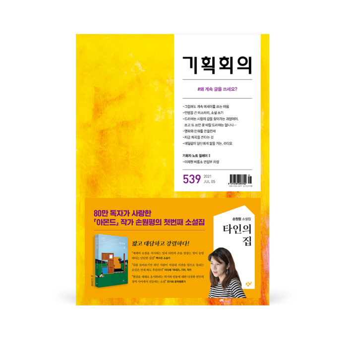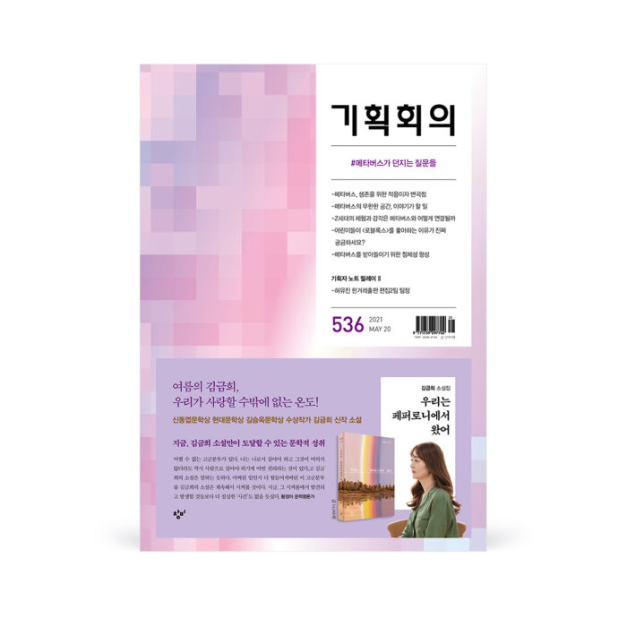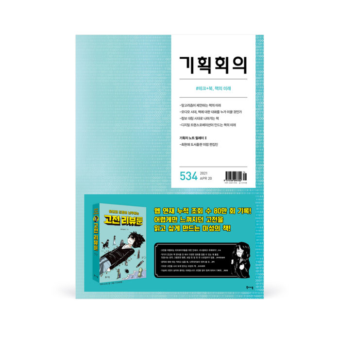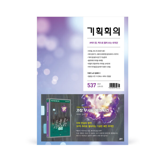 기획회의<기획회의> 537호(2021.06.05) 이슈 “케이 팝, 책으로 펼쳐 보는 세계관” 전 세계적으로 사랑받는 아이돌, 변함없이 오랜 시간 많은 이들에게 읽히는 책, 좋아하는 대상을 만나 세계관을 탐색하고 확장하는 것은 예사로운 일이 아니다. 하물며 좋아하는 아이돌 스타가 읽거나 쓴 책을 만나는 기분은 어떨까. 급부상하는 아이돌 문화의 위상만큼 출판계에서도 다양한 분야의 아이돌 관련 도서들이 속속 출간되고 있다. 이에 <기획회의> 537호에서는 한 시대의 문화를 견인하는 아이돌 산업의 모습을 살펴보고, 그들을 둘러싼 다양한 시선들을 탐독해보고자 한다.₩9,000 -